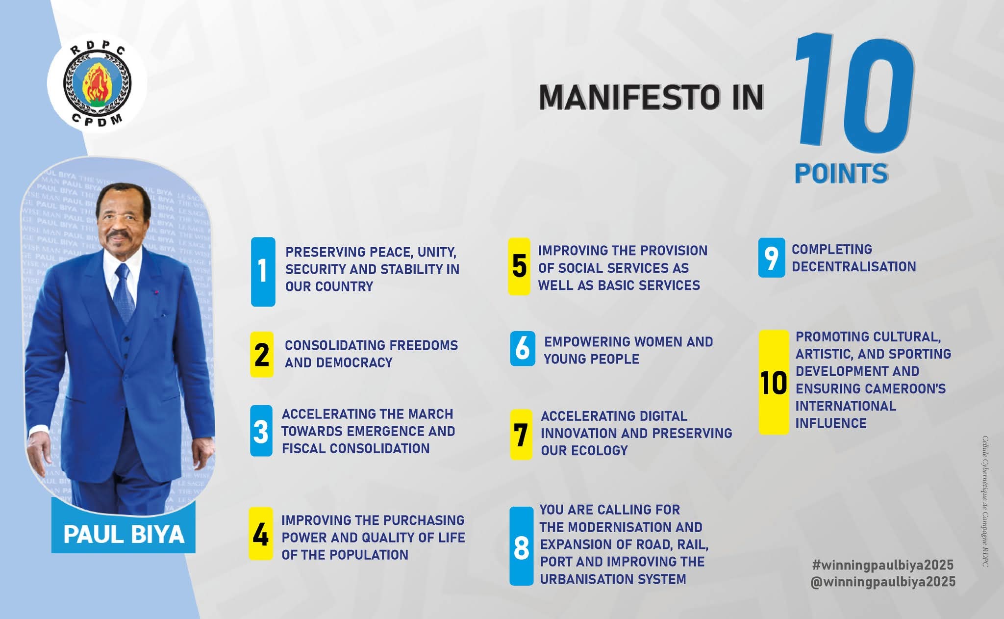 Philemon Yang concluded by reiterating that Paul Biya is the best choice for the North West Region. "We prefer a candidate we know, one who has demonstrated commitment to peace and development. Let's unite to build our country."